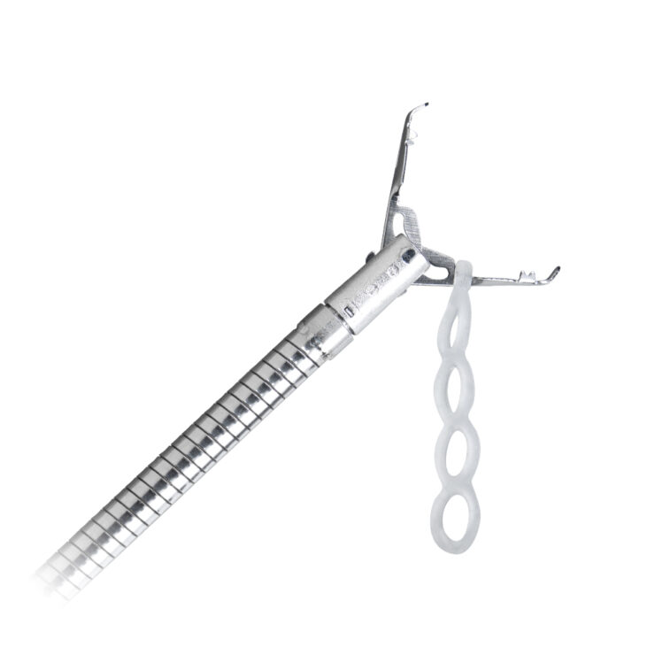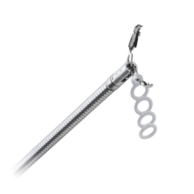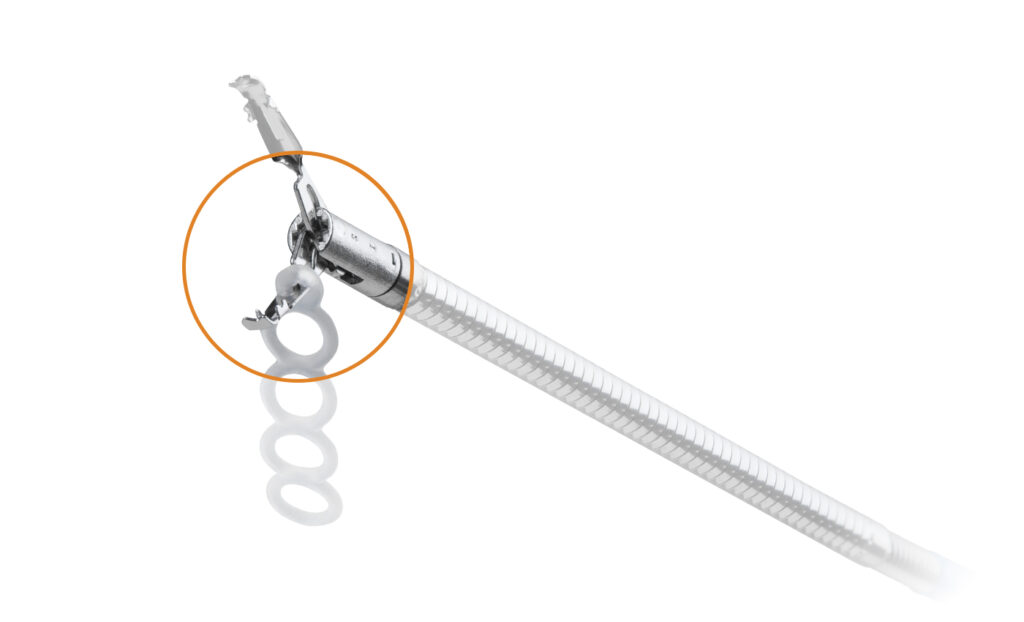 SureTrac offers a practical and proven method for supporting ESD procedures in the gastrointestinal tract. With the Lockado™ Premium Clip and the elastic silicone band, the preloaded system enables efficient tissue tension and improves the view of the resection area. The traction is achieved by hooking a second clip into one of the four available rings.